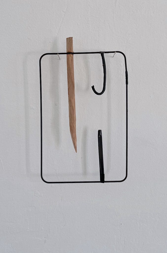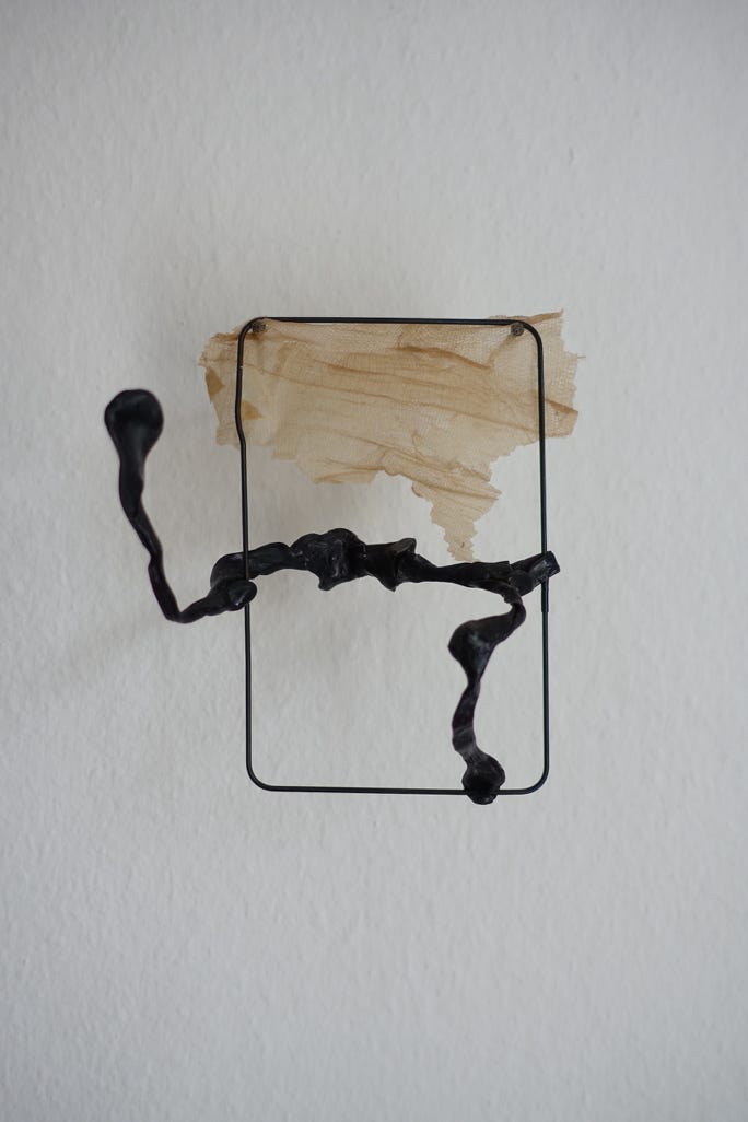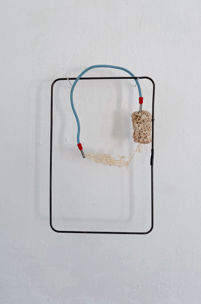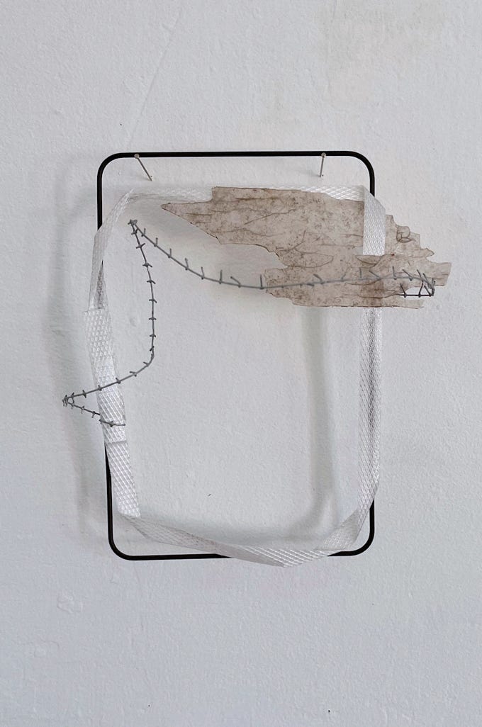 The “formative escape” series arose from the idea of embedding material studies and found objects in an archival format. The format of the frame enables a non-hierarchical juxtaposition, within which a free associative approach is possible. This practical approach gave rise to independent compositions that give space and attention to delicate materials and small-scale elements.