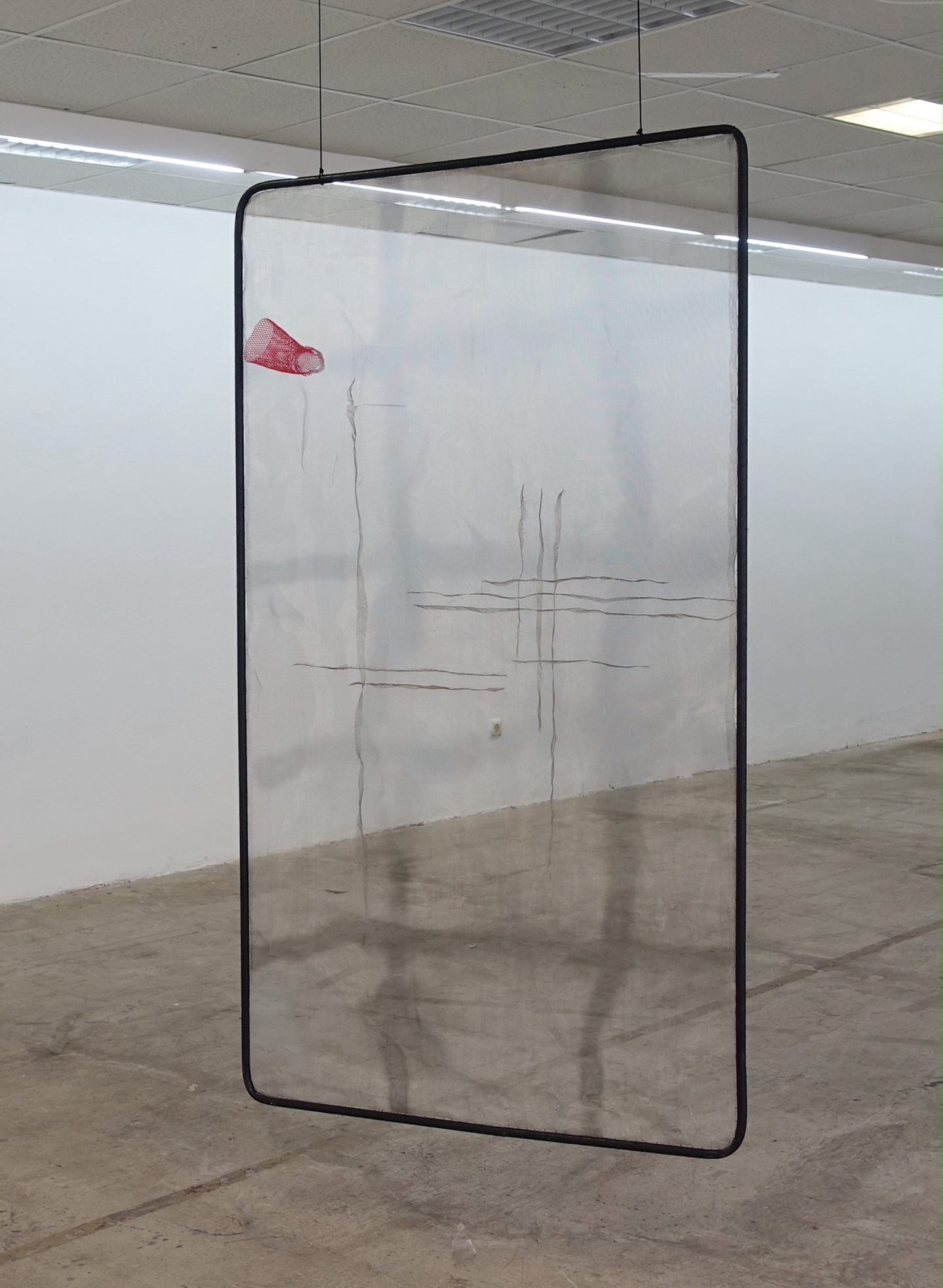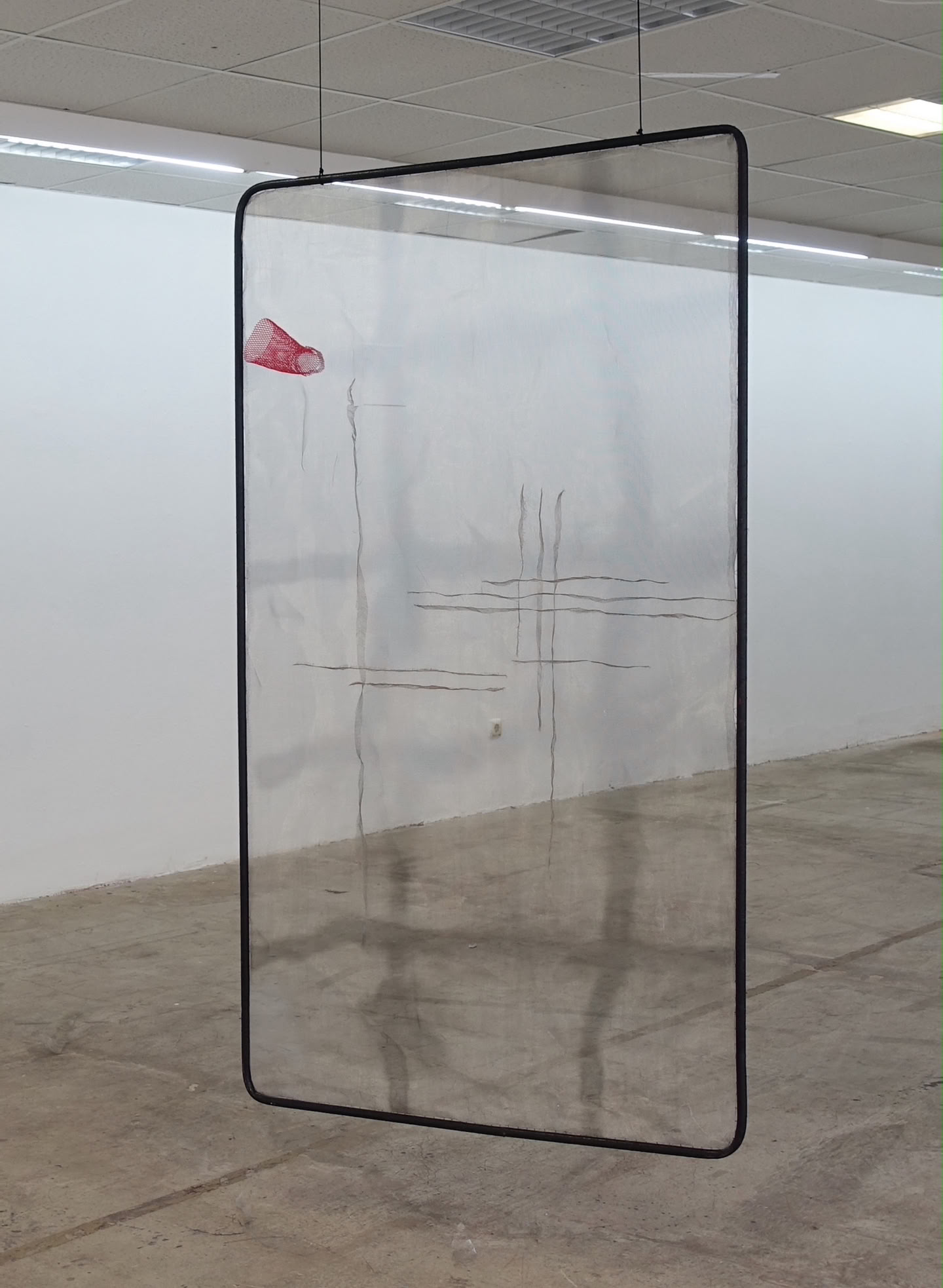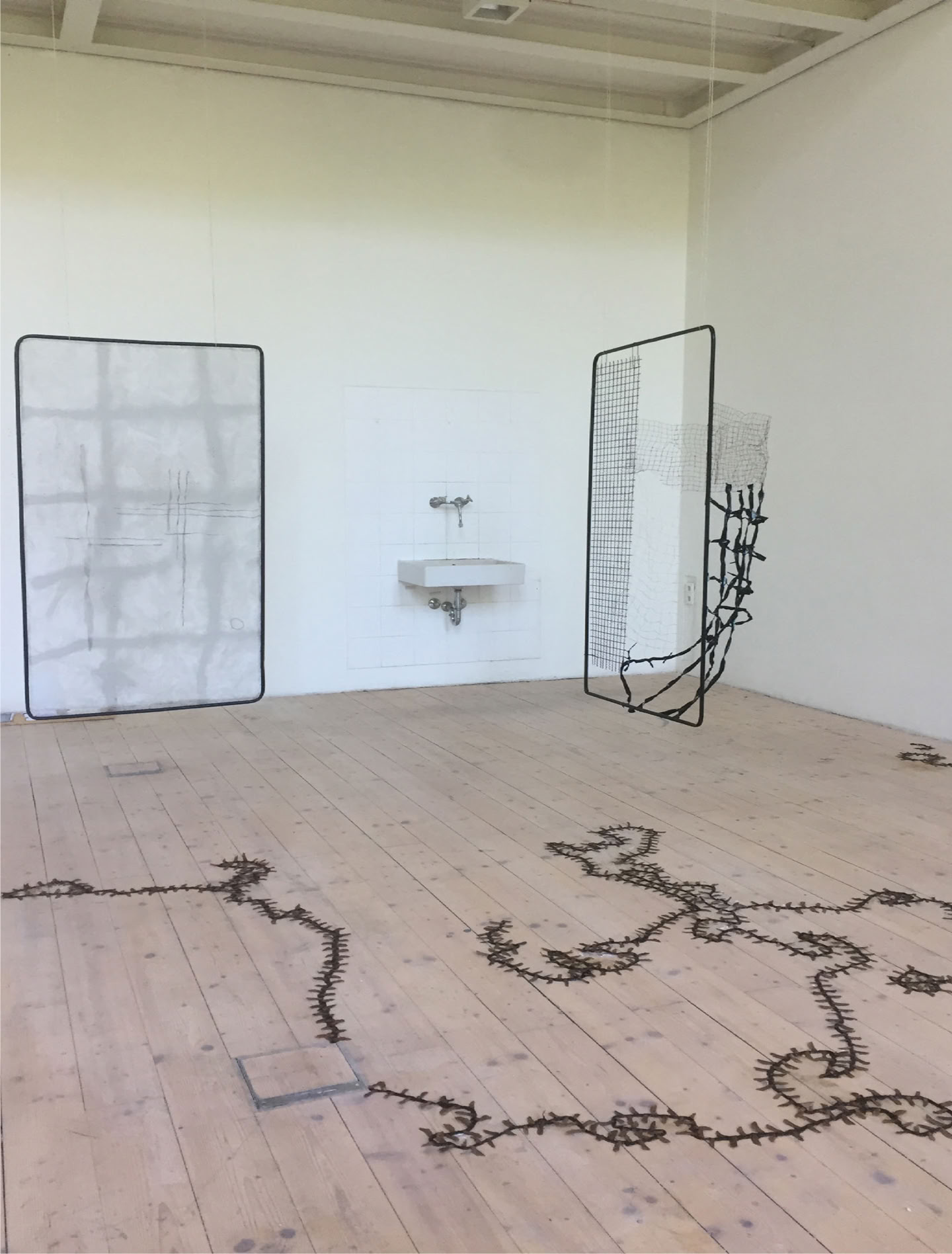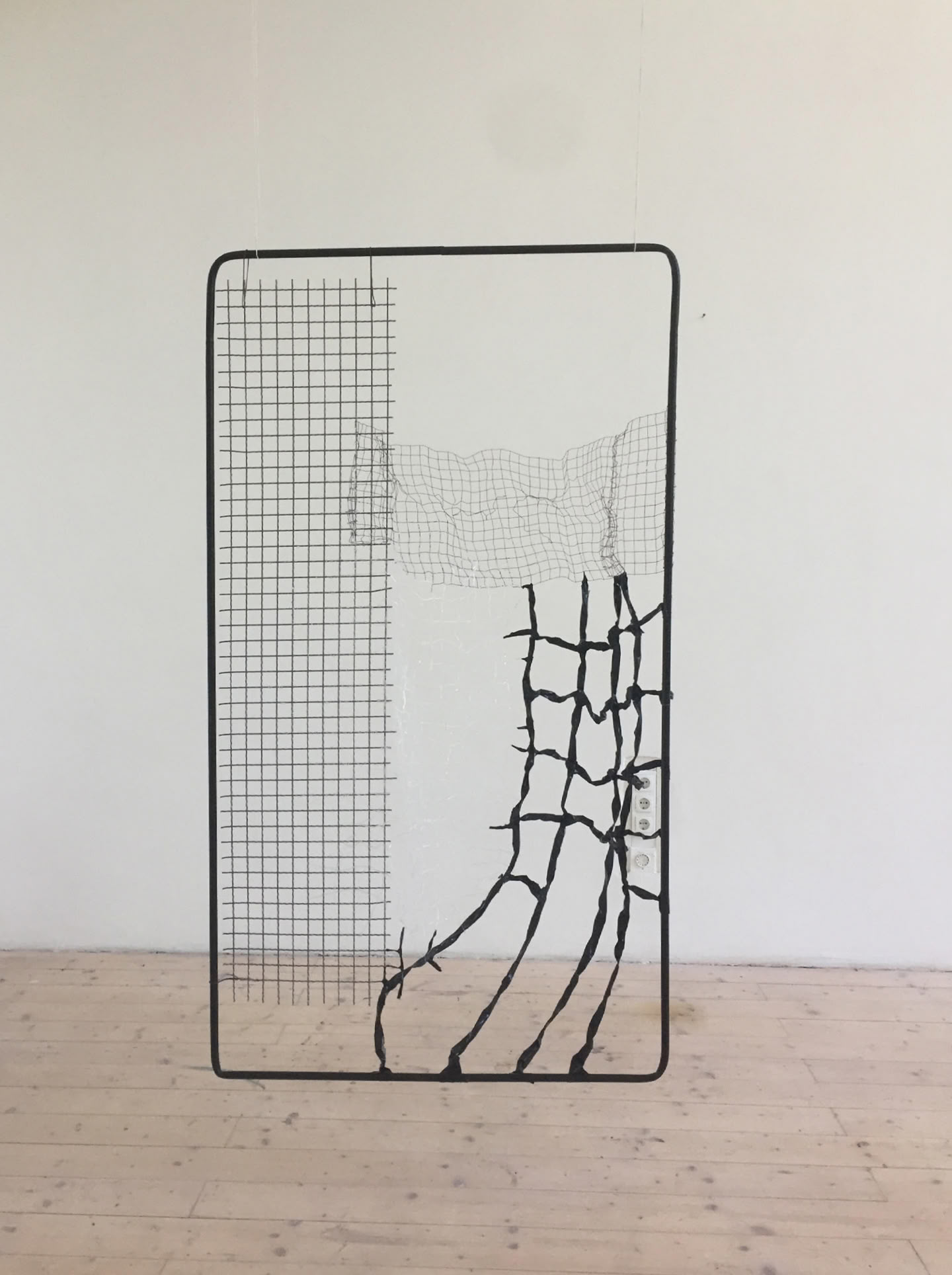 “formative expansion” is a series of works made of steel frames that moves between image and sculpture. The materials push out of the surface of the two-dimensional frame into three-dimensional space. The series reflects thoughts on “breaking open” and on structures that provide support and can serve as starting points for the development of forms. The dimensions are based on the 16:9 screen format (smartphone) and are scaled to the artist's height (160 cm). They thus create the impression of windows or portals that open up the view into the space behind and at the same time shield it.