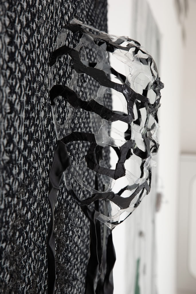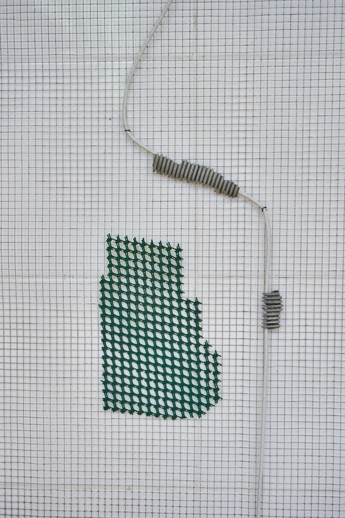 Als Symbol menschlicher Ordnungssysteme, die zur Einteilung, Organisation und Erforschung ihrer Umwelt genutzt werden, bilden Metallraster den Ausgangspunkt der Wandarbeiten. Die Rasterung deutet Kartografien und digitale Bildräume an, in denen Objekte ohne Verortung zwischen Makro- oder Mikroansicht schweben. Bewegungen der Videos werden von Linien außerhalb des Screens aufgegriffen, wodurch ein fließender Übergang zwischen bewegtem Bild und fester Assemblage entsteht. Video, Bild und Skulptur verschmelzen miteinander, während Begriffe wie Natur und Kultur, organisch und anorganisch, human und more-than-human in einen Dialog treten.