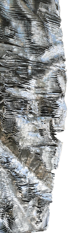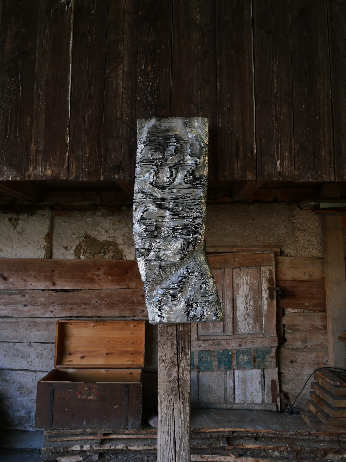 Die Werkserie “kühlkörper” besteht aus ausrangierten Wasserkühlern, die bearbeitet und abstrahiert, den industriell gefertigten Objekten eine organische Form verleihen. Damit vermischen sich scheinbar gegensätzliche Komponenten und hinterfragen die Grenzen von Menschen geschaffenen und gewachsenen Strukturen.