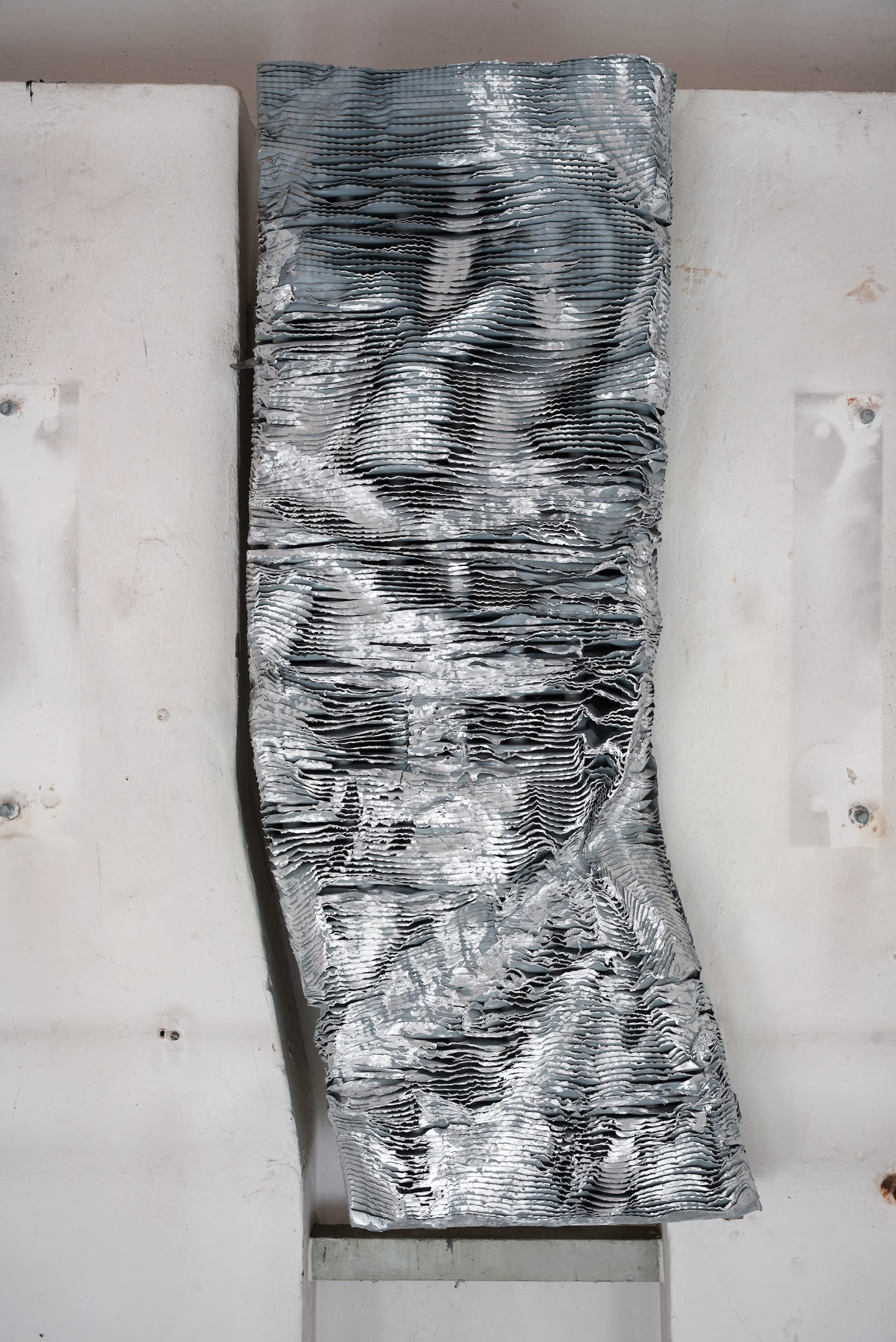 The “kühlkörper” series of works consists of discarded water coolers that have been processed and abstracted to give the industrially manufactured objects an organic form. This mixes seemingly contradictory components and questions the boundaries of man-made and grown structures.