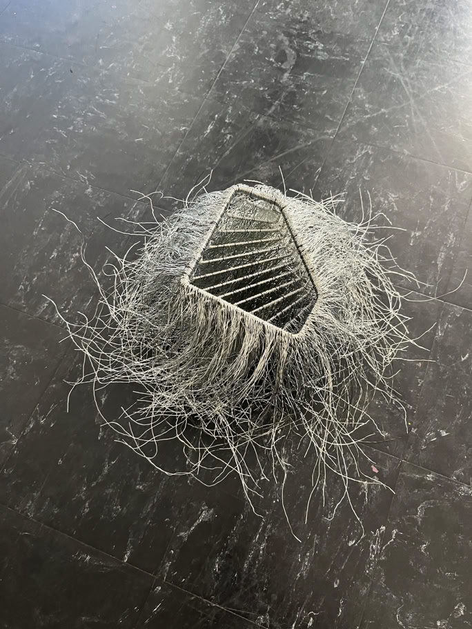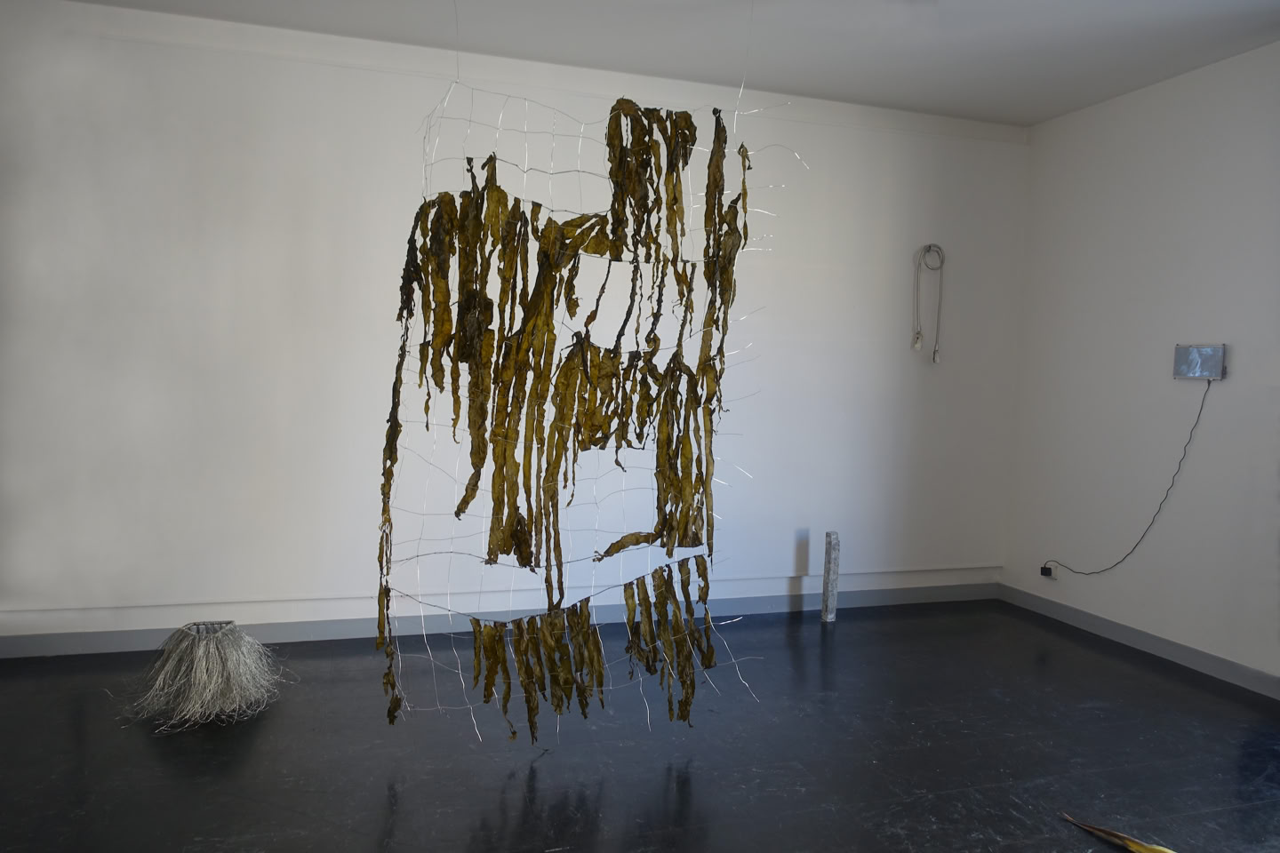 mixed media (among them: seaweed, wire, agave, shower curtain, pipes, luffa)