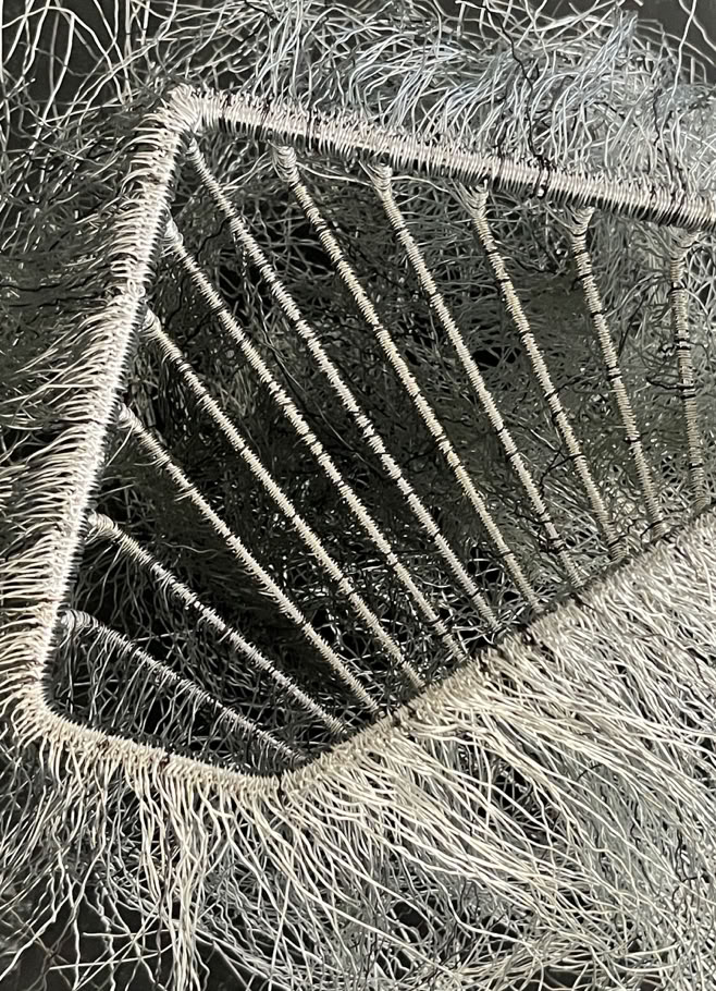 mixed media (among them: seaweed, wire, agave, shower curtain, pipes, luffa)